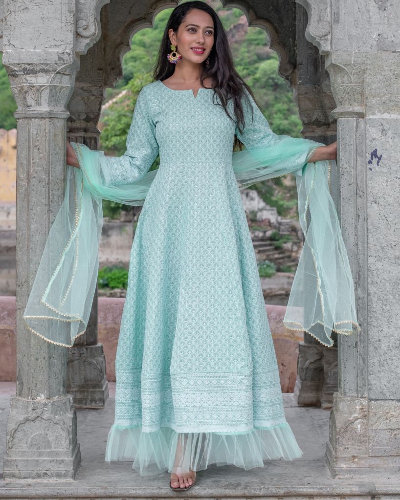 The most popular types of chikankari kurtis include: